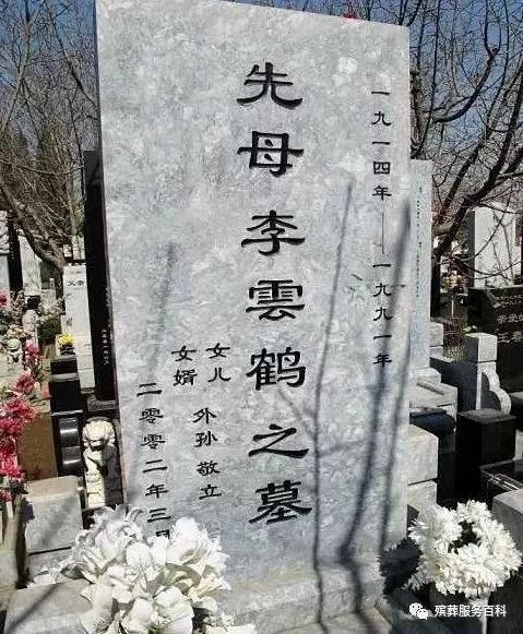 这里有一块不那么起眼的墓碑,一块白色的碑石上刻着:先母李云鹤之墓,一九一四年至一九九一年,女儿、女婿、外孙敬立。
